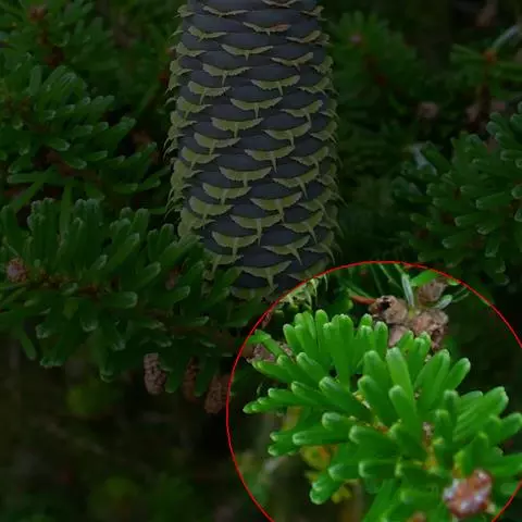 杉松(学名:Abies holophylla Maxim.)常绿乔木,高可达30米,胸径约1米。树冠阔圆锥行,老龄时则成广卵状伞形。幼树树皮淡褐色。不裂;老龄树皮灰褐色,呈不规则鳞状开裂。大枝开展,一年生枝条淡黄褐色,无毛、有光泽。叶条形。叶缘不向下反卷先端突尖或渐尖,无凹缺,叶面深绿色、有光泽。叶背面有2条白色气孔带,果枝的叶正面顶端亦常有2~5条不很明显的气孔线。球果圆柱形,熟前绿色,成熟时淡黄褐色或淡褐色,近无柄。苞鳞短,不露出,先端有刺尖头。