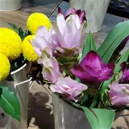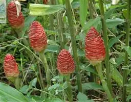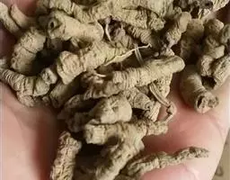 栽种方法:在整好的畦内按行株距30厘米×20~25厘米挖穴,穴深6~9厘米 莪术 ,每穴内大根茎放1块,小根茎放2块,芽头向上栽入穴内。栽后覆土6厘米并稍加镇压,每亩用种根茎100千克左右。另外,为提高土地效益,主产区多采用与玉米、大豆等间套作的方式。玉米和大豆可于3月末、4月初穴播于畦沟内或畦上,行株距应适当加大,6月中下旬将莪术间套种于玉米行间和株间,行距33厘米,挖7厘米深穴,呈三角形排列,每穴放种5块,四角及中央各1块,芽头向上,上面用细土或堆肥覆盖,每亩需种根茎150千克左右,将温郁金(温莪术)根茎分成老头、大头、二头、三头、奶头、小奶头等六类。老头即是母种第一次生出来的根茎;大头是生在老头上的根茎;二头是生在大头上的根茎;三头是生在二头上的根茎;奶头、小奶头依次类推。除老头不能作种外,其余均可采用。但大头作种,用量大,成本高;小奶头个小,生长弱。故这两类在生产中不作种用。一般应选健壮,芽饱满,形粗短的二头、三头作种,作种用的根茎愈短愈好。于清明前后下种。狭畦株距33厘米,种一单行;阔畦按株行距各50厘米,以三角形开穴种二行。穴大17~20厘米,深约7~10厘米,穴底要平,切忌过深而底尖,过深块根分散,采收费工而不易收净。每穴倾斜放根芽一个,芽向上。覆土3~7厘米。每亩用根茎125~150千克。