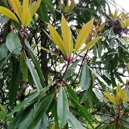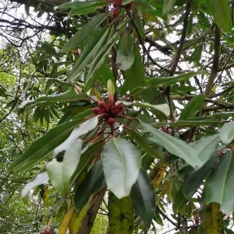 牛耳枫(拉丁学名:Daphniphyllum calycinum Benth.)别称:铃猪肚、猪肚果、 猪肚木、猪肚子、猪洛木、猪络木、猪仔木、珠碌子、山羊屎、羊屎子、老虎耳、土鸦胆子、大耳梳、南岭虎楠、南岭虎皮楠及岭南虎皮楠。为虎皮楠科虎皮楠属植物,常绿灌木或小乔木植物,高约1-6米。小枝灰褐色,具稀疏的皮孔及叶痕,直径约3-5毫米。产广西、广东、福建、江西等省区;生于海拔(60-)250-700米的疏林或灌丛中。分布于越南和日本。种子榨油可制肥皂或作润滑油。根和叶入药,有清热解毒、活血散瘀之效。