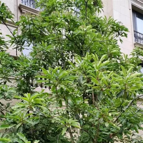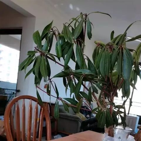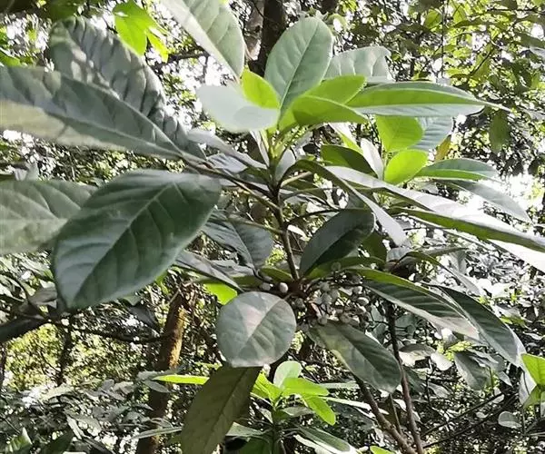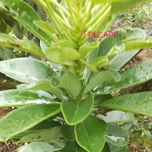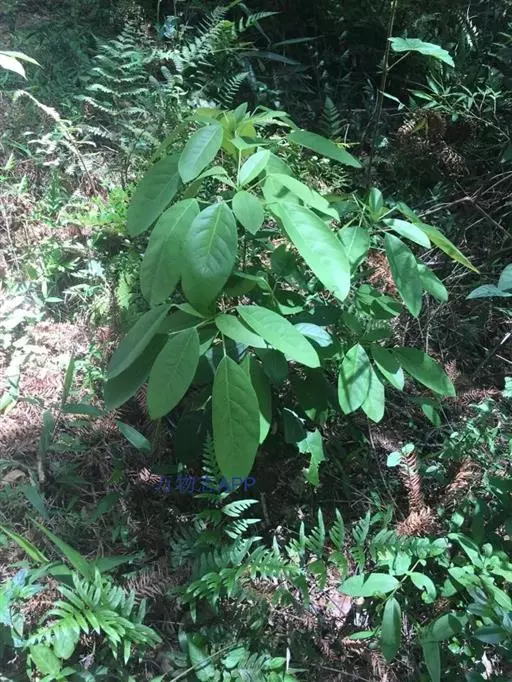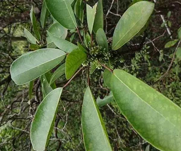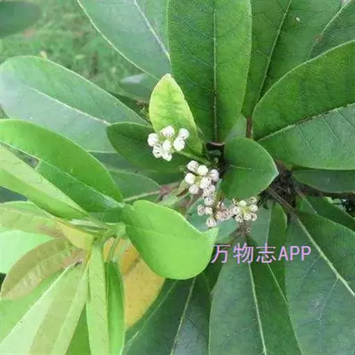 灌木,高1.5-4米;小枝灰褐色,径3-5毫米,具稀疏皮孔。叶纸质,阔椭圆形或倒卵形,长12-16厘米,宽4-9厘米,先端钝或圆形,具短尖头,基部阔楔形,全缘,略反卷,干后两面绿色,叶面具光泽,叶背多少被白粉,具细小乳突体,侧脉8-11对,在叶面清晰,叶背突起;叶柄长4-8厘米,上面平或略具槽,径约2毫米。总状花序腋生,长2-3厘米,雄花花梗长8-10毫米;花萼盘状,径约4毫米,3-4浅裂,裂片阔三角形;雄蕊9-10枚,长约3毫米,花药长圆形,侧向压扁,药隔发达伸长,先端内弯,花丝极短;雌花花梗长5-6毫米;苞片卵形,长约3毫米;萼片3-4,阔三角形,长约1.5毫米;子房椭圆形,长1.5-2毫米,花柱短,柱头2,直立,先端外弯。果序长4-5厘米,密集排列;果卵圆形,较小,长约7毫米,被白粉,具小疣状突起,先端具宿存柱头,基部具宿萼。花期4-6月,果期8-11月。