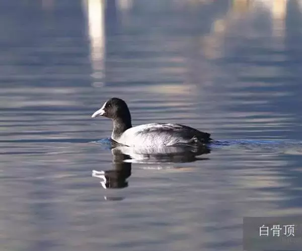 白骨顶(学名:Fulica atra)是秧鸡科、骨顶属鸟类。嘴长度适中,高而侧扁。头具额甲,白色,端部钝圆。翅短圆,第1枚初级飞羽较第2枚为短。跗蹠短,短于中趾不连爪,趾均具宽而分离的瓣蹼。体羽全黑或暗灰黑色,多数尾下覆羽有白色,两性相似。