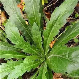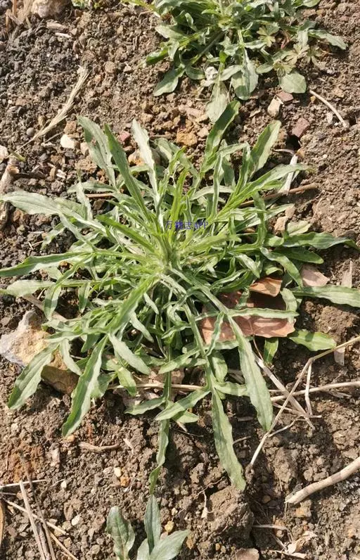 叶密集,基部叶花期常枯萎,下部叶倒披针形或长圆状披针形,长3-5厘米,宽0.3-1厘米,顶端尖或稍钝,基部渐狭成长柄,通常具粗齿或羽状浅裂,中部和上部叶具短柄或无柄,狭披针形或线形,长3-7厘米,宽0.3-0.5厘米,中部叶具齿,上部叶全缘,两面均密被贴糙毛。