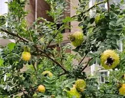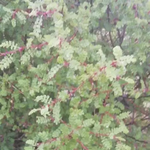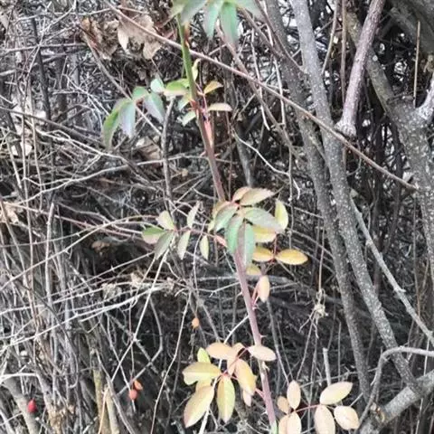 直立灌木,高约1.5米;分校较多,小枝圆柱形,无毛,紫褐色或灰褐色,有带黄色皮 刺,皮刺基部膨大,稍弯曲,常成对而生于小枝或叶柄基部。