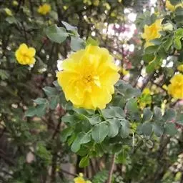 黄刺玫是蔷薇科蔷薇属的直立灌木。高2-3米;枝粗壮,密集;小叶片呈宽卵形或近圆形,边缘有圆钝锯齿,…
