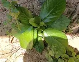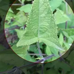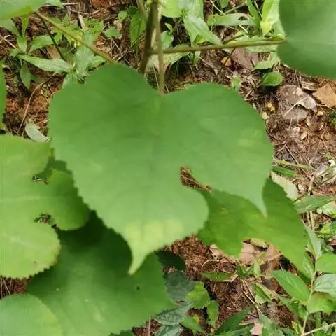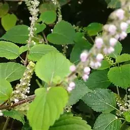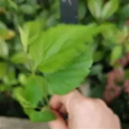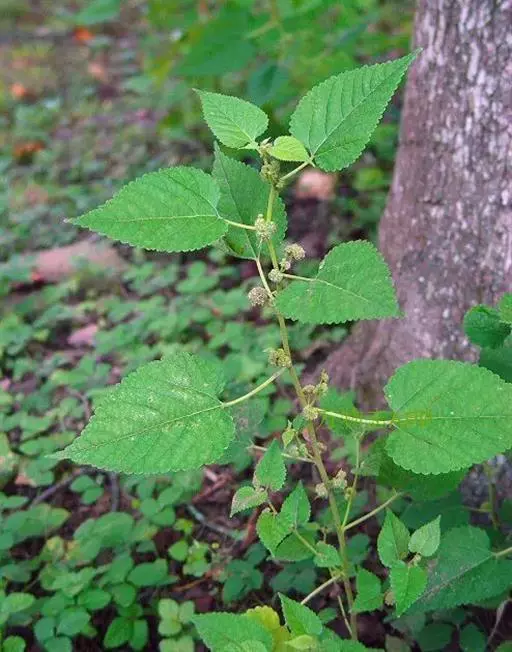 一年生草本,高30-80厘米枝直立,纤细,少分枝或不分枝,幼时绿色后变黑色,基部木质,微被长柔毛。叶膜质,卵圆形至宽卵圆形,长5-10厘米,宽3-5厘米,先端急尖,基部心形至楔形,边缘锯齿三角形,微钝,两面被粗糙贴伏柔毛,侧脉每边3-4条;叶片在基部稍下延成叶柄;叶柄被柔毛。单叶互生,卵形至卵状披针形,毛,三出脉;叶柄长5-50毫米;托叶早落。