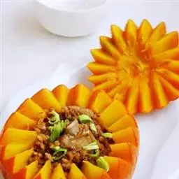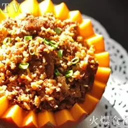南瓜蒸肉是由南瓜和猪肉为主要食材做成的一道美味菜品,具有咸鲜味,也是一道独具特色的名菜,属于浙菜系…