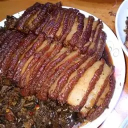梅菜扣肉,汉族传统名菜,属客家菜 。制作材料有五花肉、梅菜、葱白、姜片等。