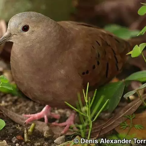 欧斑鸠体长27厘米,是一种体型略小的粉褐色斑鸠。颈侧具多黑白色细纹的斑块,翼覆羽深褐,…