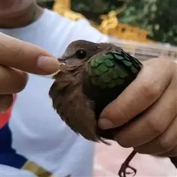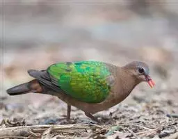 绿背金鸠体长约25厘米,是中等体型、尾甚短的地栖型斑鸠。下体粉红,头顶灰色,额白,腰灰,两翼具亮绿色。…