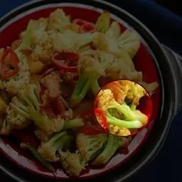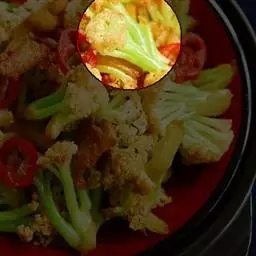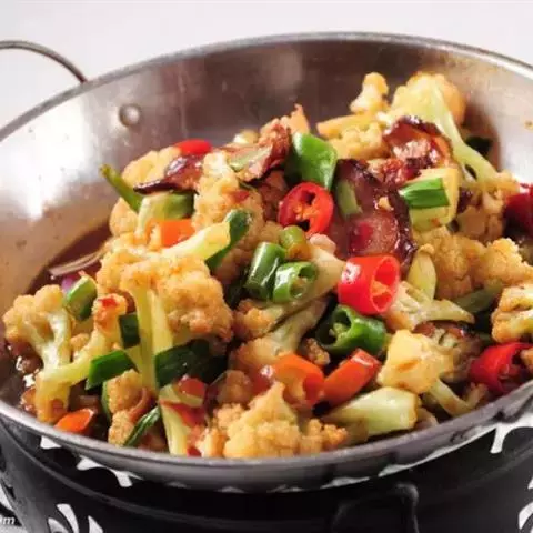 菜花比较难炒熟,所以可以在炒菜之前用水抄一下,不用水抄,就要注意火候的把握了,不然菜花会糊掉。