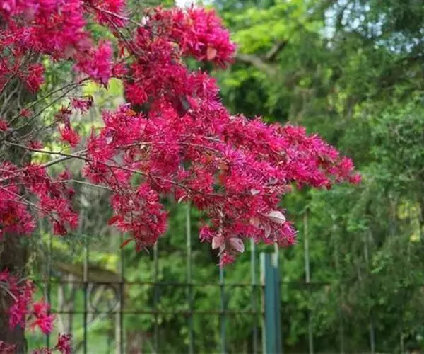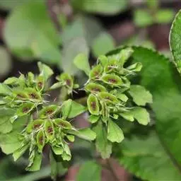 圆锥花序长8-37厘米,宽3-4(-12)厘米;下部第一回分枝长4-11.5厘米,通常与花序轴成15-30度角斜上;花序轴密被褐色卷曲长柔毛;苞片卵形,几无花梗;花密集;萼片5,卵形,长1-1.5毫米,宽约0.7毫米,两面无毛,边缘中部以上生微腺毛;花瓣5,淡紫色至紫红色,线形,长4.5-5毫米,宽0.5-1毫米,单脉;雄蕊10,长2-2.5毫米;心皮2,仅基部合生,长约1.6毫米。