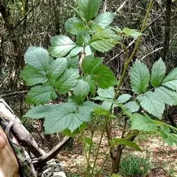 多年生草本植物,高50-100厘米。根状茎暗褐色,粗壮,须根多数。茎无毛。基生叶为二至三回三出羽状复叶;顶生小叶片菱状椭圆形,侧生小叶片卵形至椭圆形,长1.8-8厘米,宽1.1-4厘米,先端短渐尖至急尖,边缘有重锯齿,基部楔形、浅心形至圆形,腹面沿脉生硬毛,背面沿脉疏生硬毛和小腺毛;叶轴仅于叶腋部具褐色柔毛;茎生叶2-3,较小。