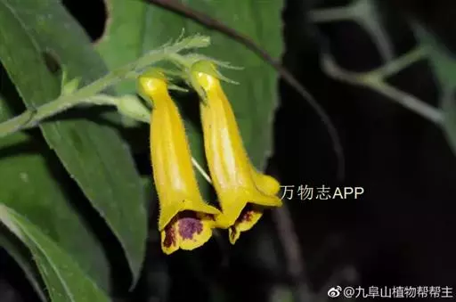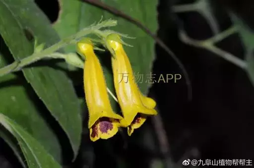 多年生草本。茎高20-45厘米,粗2-5毫米,有4条纵棱,下部疏被短柔毛,上部密被开展的褐色短柔毛。叶对生,同一对叶不等大,有时互生,具柄;叶片草质或纸质,长14形、狭椭圆形、椭圆形或狭卵形,长4.5-24厘米,宽2.8-10厘米,顶端渐尖或急尖,基部楔形或宽楔形,边缘有牙齿和小牙齿,两面疏被短柔毛,侧脉每侧约7条;叶柄长0.3-5.8厘米,被短柔毛。能育花的花序总状,顶生,长10-15厘米,轴和花梗均被褐色开展短柔毛;苞片披针形,长0.4-1厘米;花梗长2-10毫米;小苞片生花梗基部,线形或狭披针形,长2-4毫米,被短柔毛;不育花的花序似穗状花序,长约26厘米。花萼5裂达基部,宿存,裂片披针形,长7-9毫米,宽2毫米,顶端渐狭,两面均被短柔毛,有3条脉。花冠黄色,裂片有紫斑,长约3厘米,无毛;筒部筒状漏斗形,长2.6厘米,口部直径约9毫米;上唇长约4.5毫米,2深裂,下唇长约6毫米,3裂,裂片近圆形。雄蕊无毛,花丝着生于花冠基部,长2.2-2.7厘米,花药扁圆形,宽1.1毫米;退化雄蕊长约0.5毫米,无毛。雌蕊长约2厘米,子房卵球形,长约3毫米,密被贴伏短柔毛,花柱无毛,下柱头长约1.2毫米。蒴果褐色,卵球形,直径约5.5毫米,疏被短柔毛。种子褐色,长约0.9毫米。花期8月。