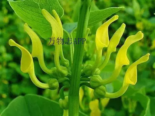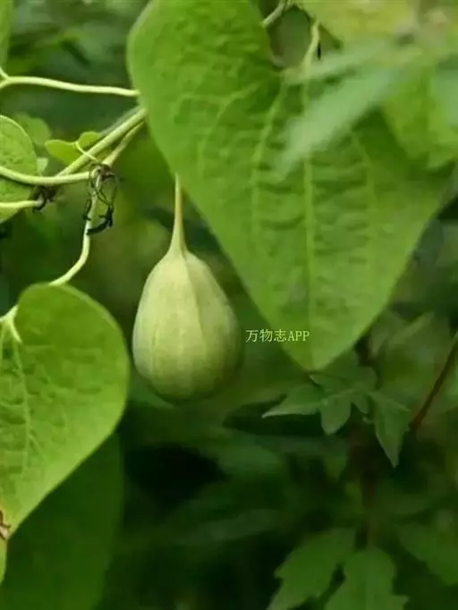 北马兜铃(中国植物图鉴)马斗铃(东北),铁扁担(陕西),臭瓜篓 北马兜铃 (山东)、茶叶包、河沟精、天仙藤(山西),万丈龙、臭罐罐(内蒙古),臭铃当、吊挂篮子、葫芦罐(甘肃)图版56:1-4