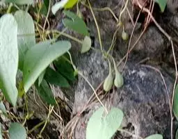北马兜铃,别名:马斗铃、铁扁担、臭瓜篓、茶叶包、河沟精、天仙藤、万丈龙、臭罐罐、臭铃当、吊挂篮子、葫芦罐,拉丁文名:Aristolochia contorta Bunge. 马兜铃科、马兜铃属草质藤本,茎长达2米以上,无毛,干后有纵槽纹。叶纸质,卵状心形或三角状心形,顶端短尖或钝,基部心形,两侧裂片圆形,下垂或扩展,边全缘,上面绿色,下面浅绿色,两面均无毛;成熟时黄绿色,果梗下垂,随果开裂;种子三角状心形,灰褐色,扁平,具小疣点,浅褐色膜质翅。花期5-7月,果期8-10月。