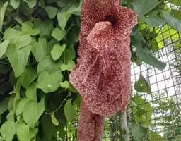 巨花马兜铃花朵的主要部分只有一片,看起来好像是一个巨大的、带有纹理的兜状物,而不像普通的花朵那样拥…