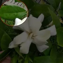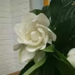 栀子花,花朵簇状约30枚瓣,奶油色,中心黄色;花径12cm;气味果香.
