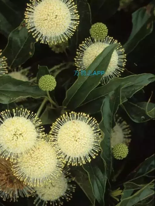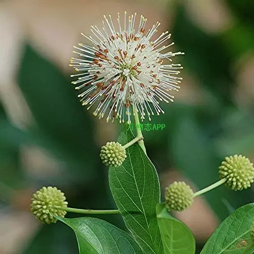 灌木至小乔木,高1-4m。根部发达,根皮浅红色。茎分枝极繁,小枝幼时被柔毛,略扁,微四棱柱形,成长后圆柱形,褐色,光滑,节明显。单叶对生和3叶轮生;托叶三角形,长约4mm,顶端常有一黑色腺体;叶片近革质;矩圆形或椭圆状披针形,长10-15cm,宽2-5.5cm,先端短尖或渐细尖,基部浑圆或近心形,全缘,上面光滑,下面常被柔毛。秋季开白色花,头状花序球形,盛开时直径3-3.5cm,微香,单生或成总状花序式排列于枝端部或上部叶腋,花序梗较长,长2.5-6cm;光滑或略有柔毛;萼倒圆锥形,长约3mm,顶端4裂;花冠漏斗形,长约8mm,裂片4,钝头,在萼檐裂片和花冠裂片间常有黑色腺体;雄蕊4;着生于花冠喉部;子房下位,2室。小核果长约6mm,顶冠以宿萼。种子具翅。花期秋末冬初(海南省为春末夏初)。