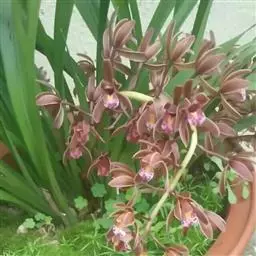 上盆(或翻盆)时间一般在春季3-4月或秋季10-11月。花盆以口小、盆深、底孔大的为佳。新从山上挖来的野生苗需理植于瓦盆(泥盆)中,这样兰花泥易干,通气性好.容易发根;2-3年后方可换人紫砂盆或瓷盆。兰花种植(在盆中)的方法与一般花卉不同,尤其是名种兰花,翻种移盆必须洗根。方法足将根浸入清水中,用旧牙刷或毛笔轻轻洗刷,切勿用力过大伤根;用剪刀将残叶、黄叶、断裂根、发黑腐烂根剪去,注意勿伤幼芽。然后将处理好的植株放在阴凉通风处晾干,待根部发白并显细小皱纹柔软时,再植入盆中。