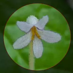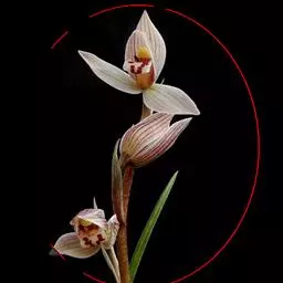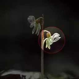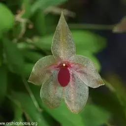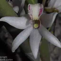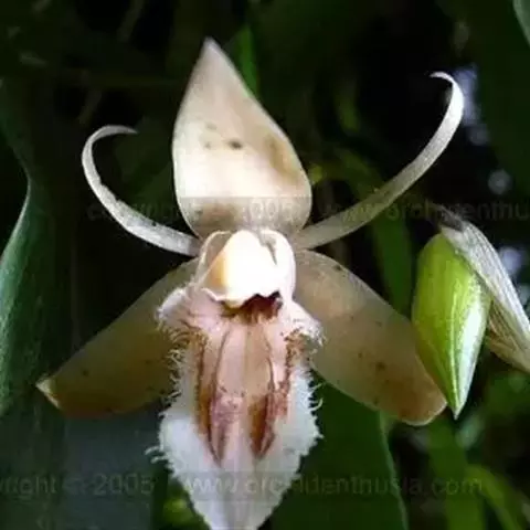花瓣线状披针形,略短于萼片,宽2-3毫米;唇瓣近卵形,长1.6-2厘米,宽约1.5厘米,3裂;侧裂片直立,半卵形,先端钝;中裂片近长圆形,长6-7毫米,宽约4毫米。边缘多少皱波状;唇盘上有3条纵褶片,从唇瓣基部延伸至中裂片的下部,褶片具皱波状缺刻;蕊柱稍向前弓曲,长约1.3厘米,两侧具翅;翅向上渐宽,在上部一侧宽约1.5毫米。花期3月。