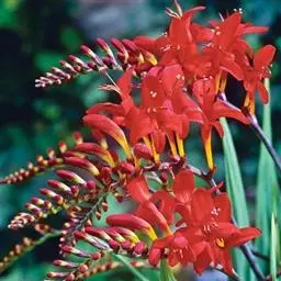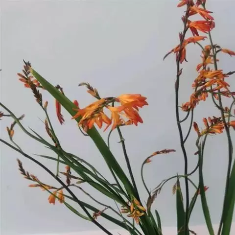 又名红花香雪兰、长梗雪香兰。叶长40~60cm,花茎强壮多分枝,植株高50cm;花筒部白色,喉部橘红色,花被片的边缘粉紫色;花期较迟。