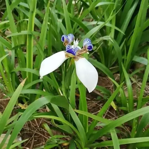 双色野鸢尾为多年生草本植物,叶子呈剑状淡绿色。…
