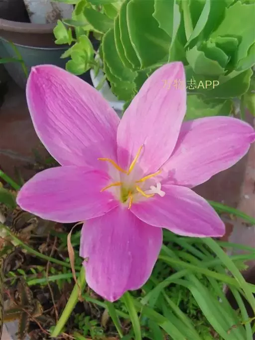韭莲(Zephyranthes grandiflora Lindl. ),为石蒜科葱莲属多年生草本植物, 丛生。