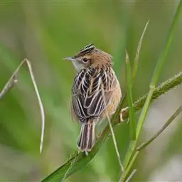 金头扇尾莺体小而具褐色纵纹的莺。嘴细长,略向下弯;翼短,体型娇小,尾长。下体皮黄,喉近白,尾深褐,…