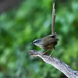 黑喉山鹪莺:体长16厘米,是一种长尾的褐色鹪莺。具明显的白色眉纹及形长的尾。特征为胸具黑色纵纹。…