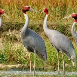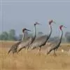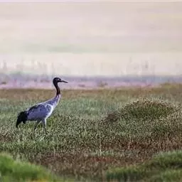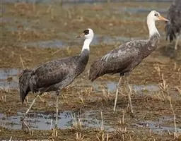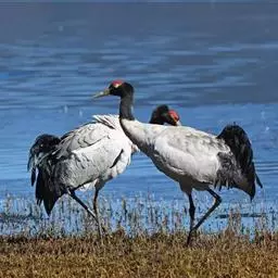 沙丘鹤栖息于富有灌丛和水草的平原沼泽、湖边草地、水塘及河岸沼泽地带,有时也出现在有树木和草本植物的高原地带。