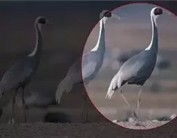 蓑羽鹤大型涉禽,体长68~92厘米,是鹤类中个体最小者。通体蓝灰色,眼先、头侧、喉和前颈黑色,…