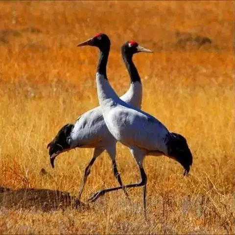 黑颈鹤:是鹤科、鹤属的大型涉禽,体长110-120厘米,体重4-6千克。颈、脚甚长,通体羽毛灰白色,…