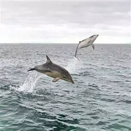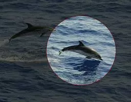 真海豚,身体细而流线型。体色十分复杂而独特,通常十字交叉型,黄褐色在前灰色在后,背面黑色向下延伸,…