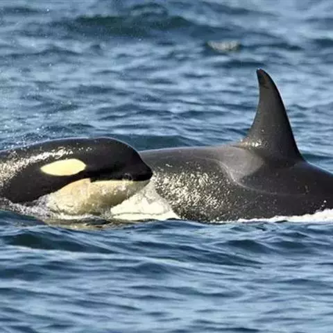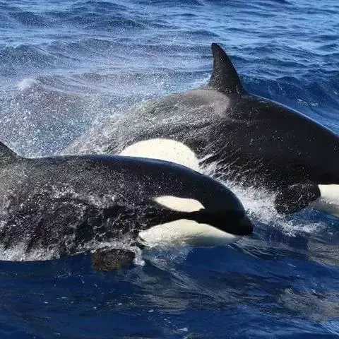虎鲸,是鲸偶蹄目海豚科虎鲸属哺乳动物。成体体重6600千克,平均体长6-9米;头部略圆,…