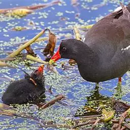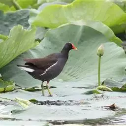 黑水鸡:是鹤形目、秧鸡科的鸟类,共有12个亚种。中型涉禽,体长24-35厘米。嘴长度适中,…
