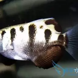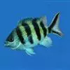 分布于印度洋中的珊瑚礁海域,属雀鲷科,体长10~15cm,椭圆形。全身紫黑色,体侧在眼睛后、背鳍中间、尾柄处有三条银白色垂直环带,嘴部银白色,经眼睛有一条黑带。饲养水温26~27℃,海水比重1.022~1.023,海水ph值8.0~8.5之间,水硬度7~9度dh。水质要求澄清,饵料有丰年虾、鱼虫、切碎的鱼虾肉、海水鱼颗粒饲料等。喜欢躲在花朵般的海葵触手中。