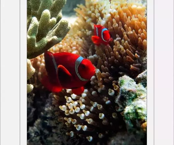 分布于印度洋、太平洋的珊瑚礁海域和台湾、中国南海及菲律宾等地,属雀鲷科,体长10~12cm,椭圆形。全身鲜红色,体侧在眼睛后、背鳍中间、有两条银白色环带。双带小丑的体色 红双带小丑鱼图片 多变,有鲜红、紫红、紫黑等,饲养水温26~27℃,海水比重1.022~1.023,海水ph值8.0~8.5之间,水硬度7~9度dh。饵料有海水鱼颗粒饲料、切碎的鱼肉、海藻等。水质要求澄清,喜欢躲在多彩的海葵中。