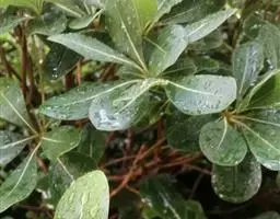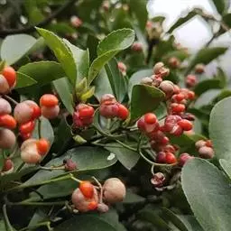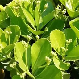 常绿灌木或小乔木,高达8米。 叶光亮革质,倒卵形或窄长椭圆形,长3-6厘米,宽2-3厘米。 聚伞花…