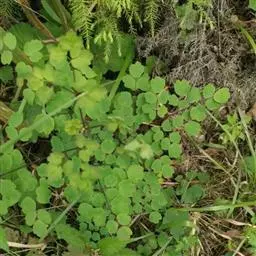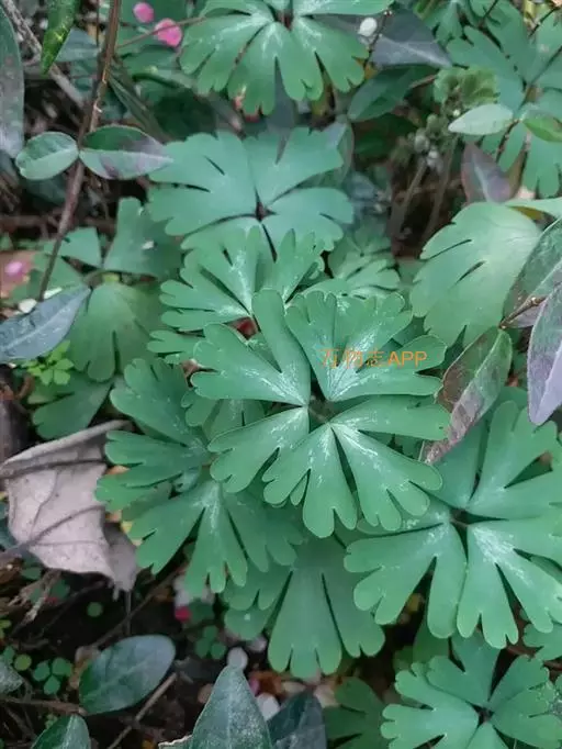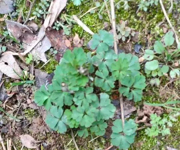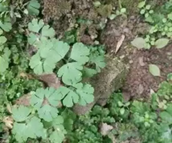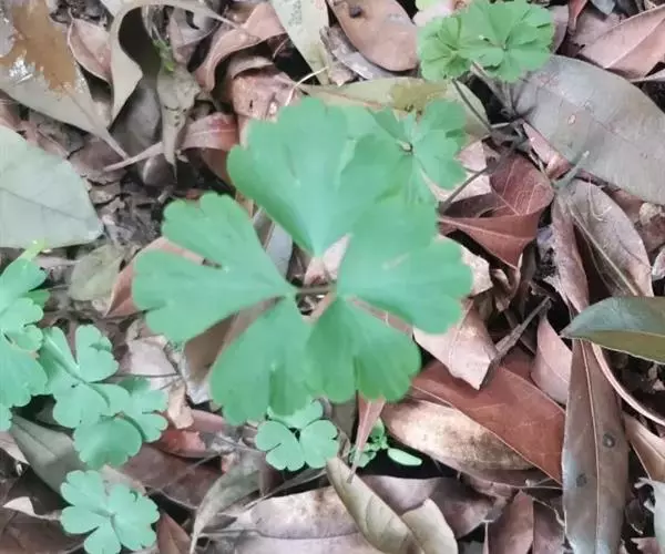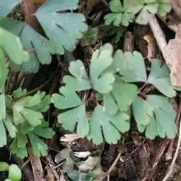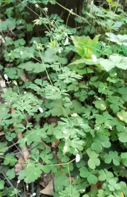 天葵〔学名:Semiaquilegia adoxoides (DC.) Makino〕是毛茛科天葵属多年生小草本植物,块根长达2厘米,外皮棕黑色。茎高可达32厘米,基生叶为掌状三出复叶;叶片轮廓卵圆形至肾形,小叶扇状菱形或倒卵状菱形,两面均无毛;叶柄长可达12厘米,茎生叶与基生叶相似,惟较小。花小,苞片小,倒披针形至倒卵圆形,花梗纤细,萼片白色,常带淡紫色,狭椭圆形,花瓣匙形,与花丝近等长;蓇葖卵状长椭圆形,表面具凸起的横向脉纹,种子卵状椭圆形,3-4月开花,4-5月结果。