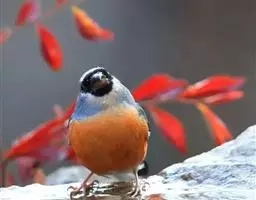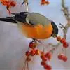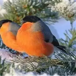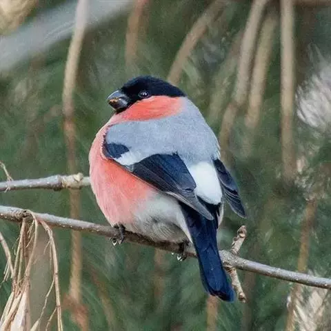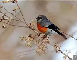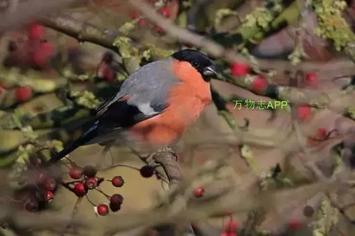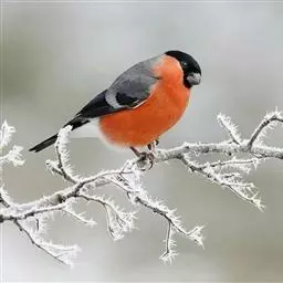红腹灰雀(学名:Pyrrhula pyrrhula):为雀形目雀科灰雀属的鸟类。体重18-36克,体长154-179毫米;雄鸟的腹部红色,上体余部从颈至背,包括肩羽和翼上覆羽概灰色;腰部白色;尾羽紫黑色;外侧尾羽基部的大部白色;大覆羽基部黑色,尖端白色,形成翼上显明白带;颊、喉、颈侧以及下体概呈鲜红色,至下腹到尾下覆羽转为纯白色。雌性成鸟:全体灰色,无红色渲染,背部微沾棕色;其余部分与雄鸟相同。虹膜赤褐色;嘴黑色;脚褐色。