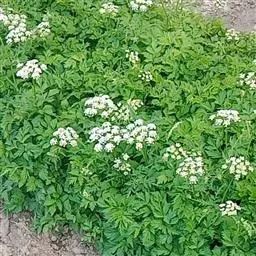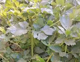防治方法:保持田园清洁,避免与伞形花科蔬菜轮作;发病初期,可喷施 2%嘧啶核苷类抗菌素或武夷菌素 200~300倍液,或40%氟硅唑乳油8000倍液,或10%苯醚甲环唑水分散粒剂1000倍液,或30%氟菌唑可湿性粉剂4000倍液,或15%粉锈宁可湿性粉剂1000~1500倍液。保护地种植,也可用 5%百菌清粉尘或5%春雷氧氯铜粉尘剂喷粉,用量1千克/ 亩。病害刚发生时,立即喷小苏打500倍液,每隔3天喷1次,连喷5~6次,在保护地上应用,不仅效果好,而且还可分解出二氧化碳,有利于提高产量。