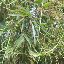 凤尾竹 Raeusch. ex Schult. ’Fernleaf’ R. A. Young)是禾本科,簕竹属孝顺竹的变种。植株较高大,杆高可达6米,竿中空,小枝稍下弯,下部挺直,绿色;竿壁稍薄;节处稍隆起,无毛;叶鞘无毛,纵肋稍隆起,背部具脊;叶耳肾形,边缘具波曲状细长繸毛;叶舌圆拱形,叶片线形,上表面无毛,下表面粉绿而密被短柔毛,小穗含小花,中间小花为两性;外稃两侧稍不对称,长圆状披针形,先端急尖;内稃线形,脊上被短纤毛,花药紫色,子房卵球形,羽毛状。成熟颖果未见。原产中国,华东、华南、西南以至台湾、香港均有栽培。凤尾竹喜温暖、湿润和阳光充足的环境,耐寒。宜土层深厚、肥沃、疏松的微酸性壤土。该种观赏价值较高,宜作庭院丛栽,也可作盆景植物。全草或根入药,味淡、微苦,性寒,有清热利湿、凉血止血、消肿解毒功效,可治痢疾、泄泻等多种病症。凤尾