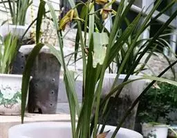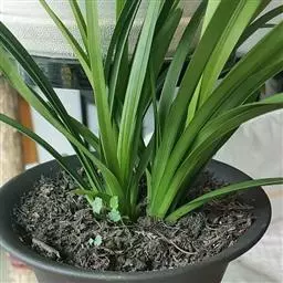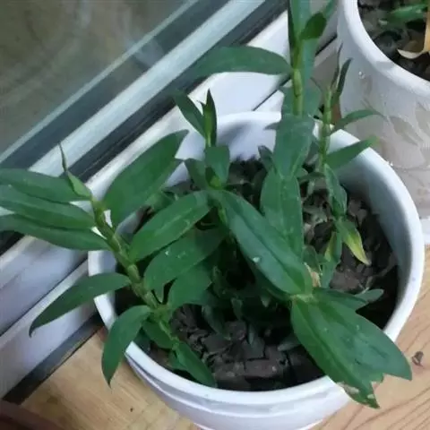 种植:植株只有1-2丛的可栽于盆的正中,盆栽多丛的应把每丛的老株朝向盆中,新株朝盆缘,以提高新株的发芽率和生长发展空间。种植时将最粗植料放入盆内直至盆高度的15%,放入兰株后,要布匀根群,谨防兰根折伤,慢慢填入细植料直至盆高的95%,拍摇,使细植料与兰根紧密结合,细植料在兰盆中的高度约90%,使于浇灌,兰株基(假鳞茎)半裸露于盆面,使其更有机会获得自然光照和新鲜空气。