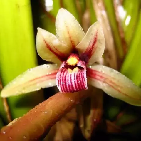 莎草兰是兰科兰属的附生草本植物。假鳞茎近卵形,稍有香气,奶油黄或淡黄绿色,有时略有淡粉红色晕,…