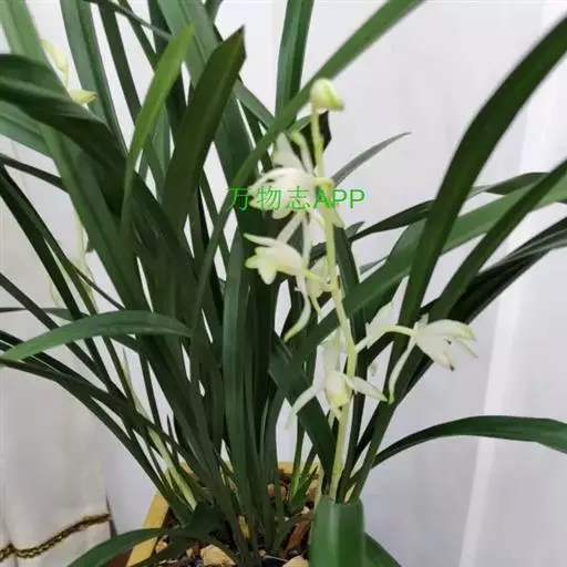 建兰素花,绿白色,清香,一枝开花5至12朵。叶色钢青,细而挺拔,有铮铮铁骨之相,所以叫铁骨素。在日…