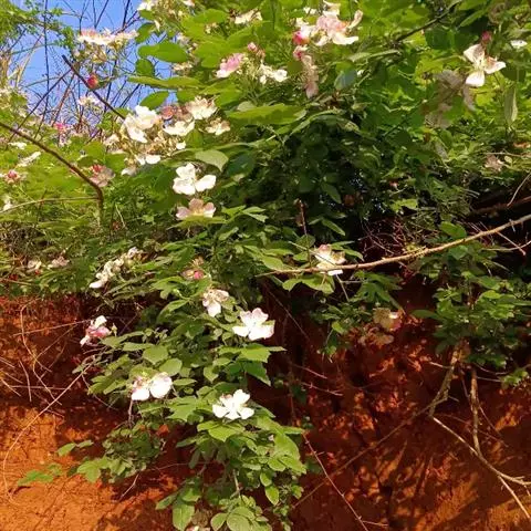 峨眉蔷薇,是蔷薇科蔷薇属直立灌木植物。峨眉蔷薇的小枝无刺或有扁而基部膨大皮刺;小叶长圆形或椭圆状长圆形,无毛;叶轴和叶柄有散生小皮刺,离生部分三角状卵形,边缘有齿或全缘;花单生叶腋,萼片披针形,全缘;花瓣白色,倒三角状卵形;蔷薇果倒卵圆形或梨形,熟时亮红色,果柄肥大,宿萼直立;花期为5-6月,果期为7-9月。峨眉蔷薇以产地命名。峨眉蔷薇产于中国多地,生于山坡、山脚下或灌丛中。峨眉蔷薇耐干旱,耐瘠薄,对土壤要求不严,在土层深厚、疏松、肥沃湿润且排水通畅的土壤中生长更好。峨眉蔷薇的繁殖方式为播种、扦插、压条。峨眉蔷薇的果实成熟时味甜,可鲜食,也可酿酒,晒干磨粉掺入面粉可作食品,其果实中含有糖及维生素等。峨眉蔷薇的果实不仅可以食用,还可入药,有止血、止痢、涩精之效。除此之外,峨眉蓄薇根皮含鞣质,可提制烤胶。
