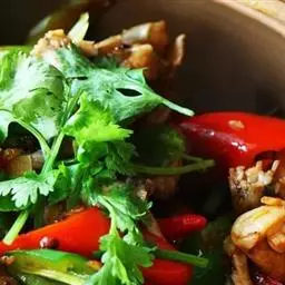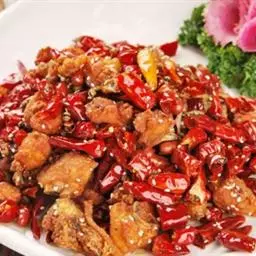 干辣椒性辛温,能祛寒健胃,其色泽鲜红,辣味较重。干辣椒品种很多,有大金条、二金条、五叶椒、朝天椒、七星椒、大红袍和小米椒等。