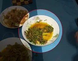 烫制成熟的菜肴放在装有辣椒面和炒盐的盘内,根据自己的口味需要蘸辣椒和盐后食用。或蘸或不蘸,或多或少由自己决定。