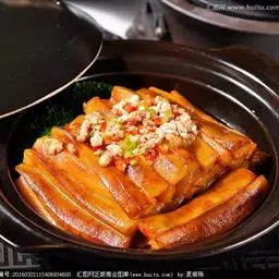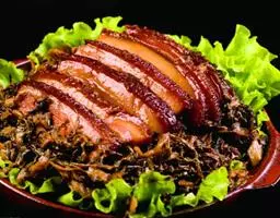 梅菜扣肉,汉族传统名菜,属客家菜 。制作材料有五花肉、梅菜、葱白、姜片等。
