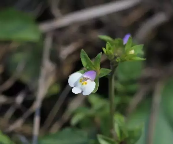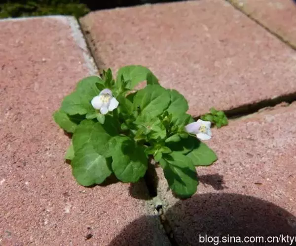 一年生草本,高3-30厘米,无毛或疏生短柔毛。主根伸长,垂直向下或短缩,须根纤细,多数,散生或簇生。本种在体态上变化幅度很大,茎1-5支或有时更多,直立,上升或倾卧状上升,着地部分节上常能长出不定根,分枝多而披散,少不分枝。基生叶少到多数,有时成莲座状或早落,倒卵状匙形至卵状倒披针形,膜质至薄纸质,长2-6厘米,顶端全缘或有不明显的疏齿,基部楔形,下延成带翅的叶柄,边缘具不规则的粗齿或基部有1-2片浅羽裂;茎生叶对生或互生,少数,与基生叶相似或几乎等大。总状花序生于茎、枝顶端,常在近基部即生花,伸长或上部成束状,通常3-20朵,花疏稀;花梗在果期长达10毫米,上部的较短;花萼钟状,花期长约6毫米,果期多少增大,萼片与萼筒近等长,卵形,端急尖,脉不明显;花冠白色、紫色或蓝色,长约10毫米,上唇裂片卵状三角形,下唇中裂片较小,稍突出,倒卵圆形;子房无毛。蒴果球形;种子小而多数,黄色,种皮上有不规则的网纹。花果期4-10月。